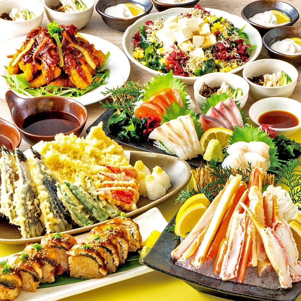 「茹で本ズワイガニ」や「牛ミスジ一口ステーキ」といった贅沢食材をメインに、3種のきのこや秋刀魚など旬をふんだんに盛り込んだ秋のプレミアムコースを4500円からご用意。日~木なら通常お一人様+500円の【飲み放題3時間】or【全メニュー飲み放題】へのアップグレードが無料。4名様以上のご予約で【横断幕】or【寄せ書きボトル】の選べる特典付きです。