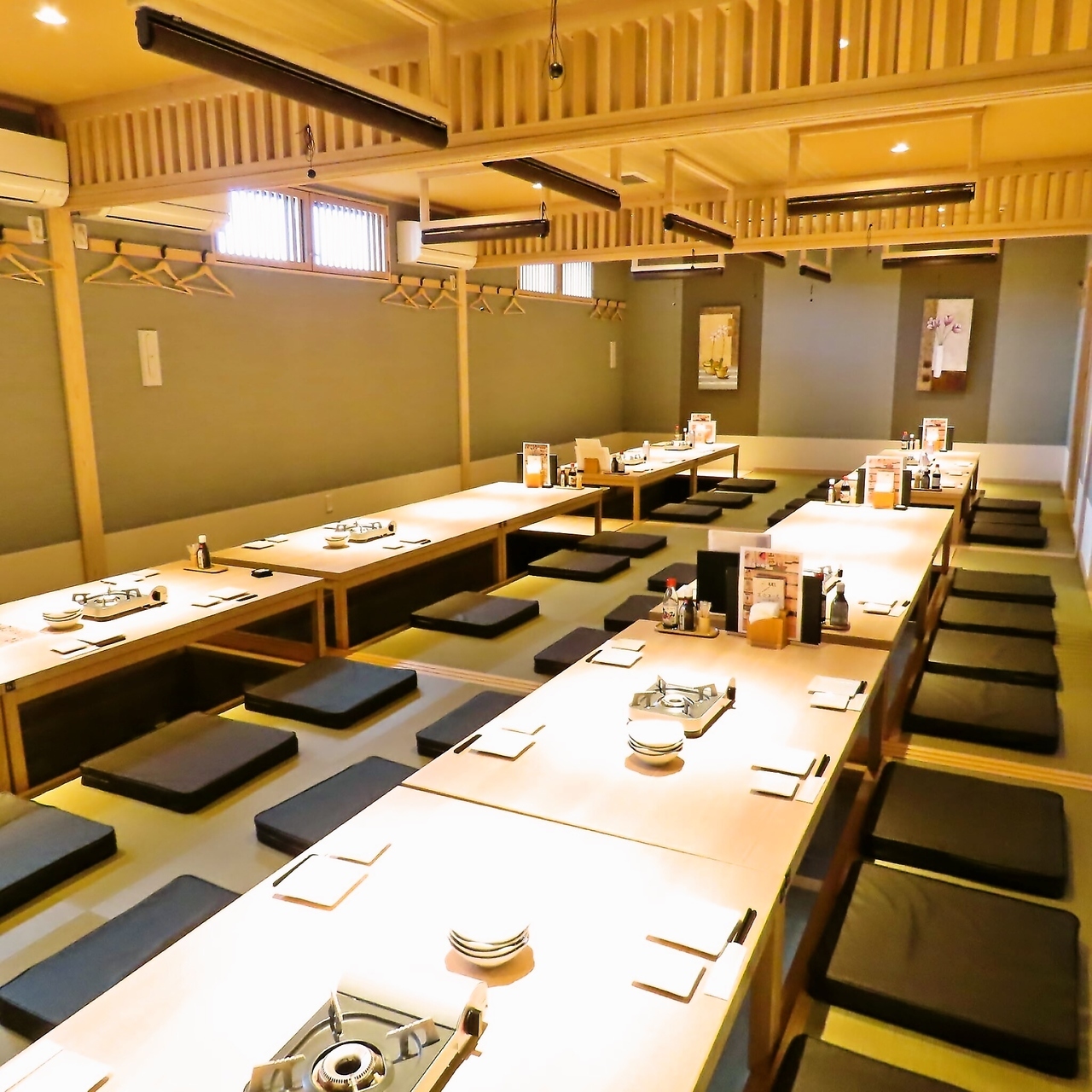 最大48名様がご利用可能な掘りごたつ席もご用意。歓迎会などの会社宴会や友人が集まる飲み会、二次会、女子会などシーンを選ばずにご利用いただけます。2時間飲み放題付きコースも各種ご用意しておりますので、落ち着いた雰囲気のなかゆったりとお過ごしください。